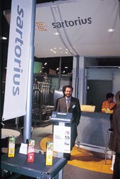 e per il processo. Allo stand SARTORIUS il posto d'onore è stato riservato al sistema di filtrazione tangenziale Sartoflow 2000, impianto completamente automatizzato che garantisce un delicato trattamento del vino ed è in grado di lavorare 24 ore su 24 senza interventi di operatori. In merito alla filtrazione tangenziale, un'opportunità interessante è offerta dalla realizzazione di un sistema adatto ad aziende medio-piccole, facilmente trasportabile, in modo da poter essere utilizzato a turno anche in comune, come già sta avvenendo in Francia. In fiera sono state inoltre presentate le nuove cartucce filtranti a membrana PESU, i sistemi da laboratorio per controlli microbiologici e le innovative tecnologie di pesatura. Monechi ha inoltre ricordato la recente inaugurazione a Göttingen, dei nuovi complessi a norma GMP dedicati allo siluppo dei prodotti della Divisione Biotecnologie, alla presenza del Cancelliere Schroeder, del Presidente del Gruppo Sartorius Claassen e di 2700 invitati. |