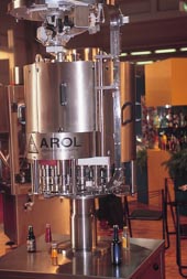 L'ing. Bruno Reggio della AROL di Canelli, ha notato in fiera una presenza soprattutto europea e molto interessata alla qualità. Per la AROL protagonista del mercato mondiale delle macchine per chiusura di contenitori, il Simei è stato occasione per la presentazione di una nuova tappatrice per tappo in sughero, con un carattere di fruibilità decisamente innovativo. |