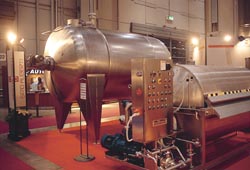 La signora Elda Aliberti, della SIRIO ALIBERTI di Canelli, ha ricavato nel corso della fiera milanese dei segnali positivi. I visitatori si sono mostrati interessati e qualificati. Sono aumentate in Italia e anche all'estero le richieste di vinificatori. La SIRIO ALIBERTI, che oggi fa parte del Gruppo DELLA TOFFOLA, presentava le autoclavi, i vinificatori orizzontali e verticali, serbatoi in acciaio, prelevacampioni isobarici, dosatori in acciaio inox per l'immissione di chiarificanti in autoclave, saturatori in acciaio inox. |
