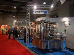 Rivolta anche fuori del settore enologico, FIMER ha esposto una macchina elettronica dedicata al settore oleario e una macchina progettata per il confezionamento molto particolare di un detersivo liquido.