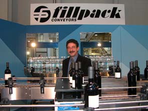 Romeo De Vito della Fillpack (Canelli – AT) ditta specializzata in sistemi di trasporto e movimentazione, vede il Simei come una grande vetrina sul mondo e come opportunità di incontri internazionali. Per questo salone la sua azienda ha presentato come innovazione un sistema di movimentazione in cui la geometria dei nastri è stata modificata in modo da consentire alle bottiglie di fluire senza urti, con minor rumore e in genere con maggiore facilità.